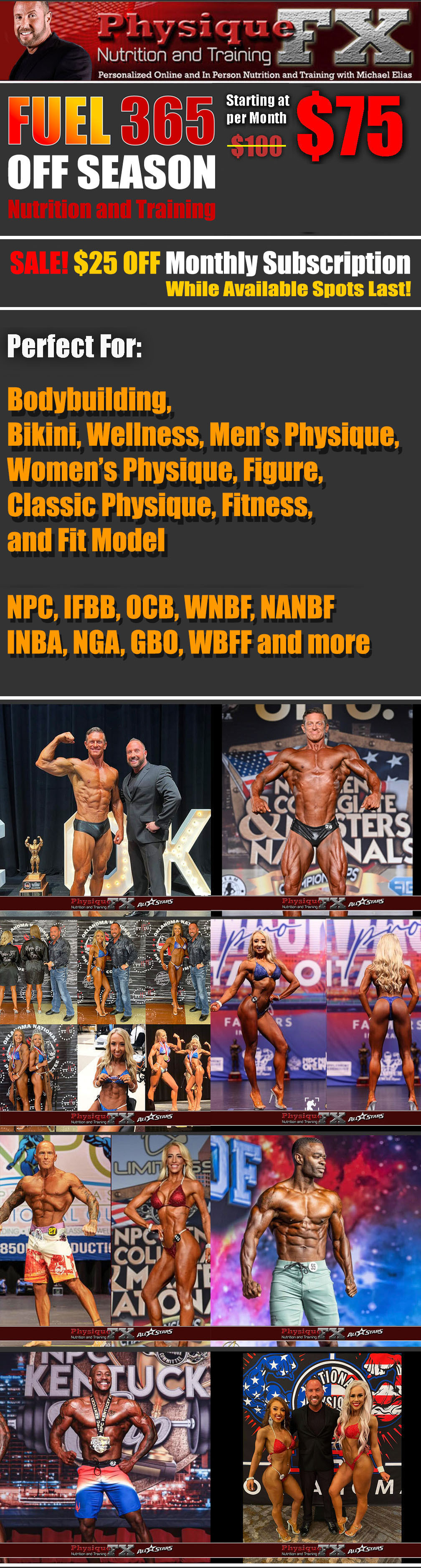 The PhysiqueFX Fuel 365 Contest Prep Offseason Program is an excellent choice for anyone who wants to improve their physique between competitions or get their physique to the point that they are ready to begin a contest prep in the future.